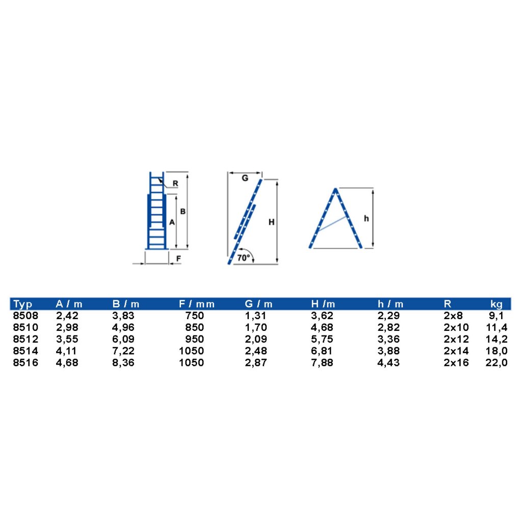 Dvojdielny hliníkový rebrík 2x8 FORTE